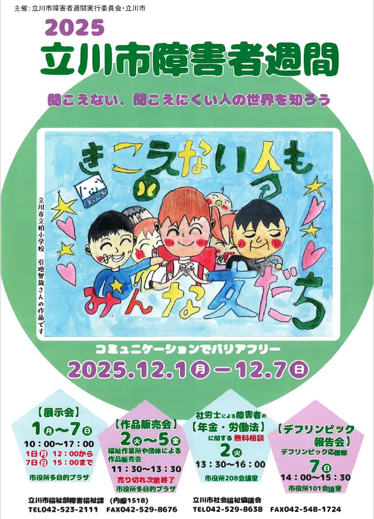 立川市障害者週間「社労士による障害者の年金・労働法に関する無料相談」のお知らせ
